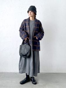 全体的にカジュアルながらも落ち着きのある、秋冬の冷たい空気にぴったりの大人のコーディネートです。