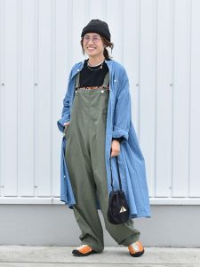 シンプルでありながらも個性的なアイテム使いで、ナチュラルスタイルを楽しめるコーディネートです。