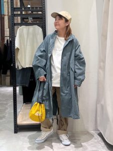 ゆったりとしたシルエットの「モッズコート」は、落ち着いたブルーグレーが大人っぽさを演出。