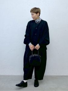 バッグもコンパクトなデザインでブラックにまとめられており、シンプルでありながら洗練された印象に仕上がっています。