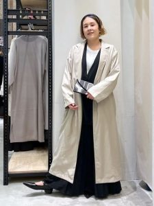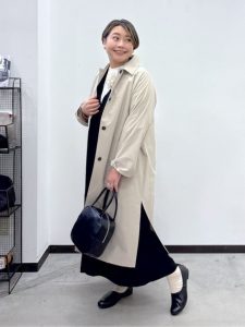トレンチコートは、春の気候に合わせた軽やかな素材感でありながら、防寒性も兼ね備えているため、肌寒い季節に最適です。