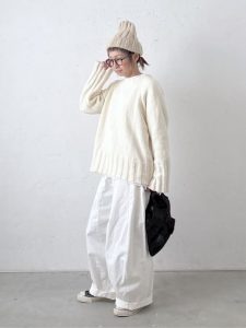 ホワイトのワントーンコーデは、清潔感と柔らかさを兼ね備えた仕上がり。