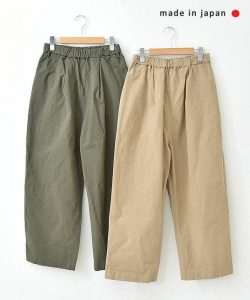 動きやすいリネンワンピースにテーパードパンツを合わせたカジュアルなコーディネート。