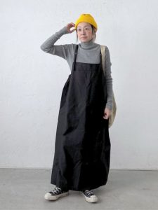黒のサロペットスカートとの相性も抜群です。