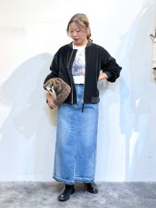 2.フレアシルエットやカラーなど個性派デニムスカートを楽しむ