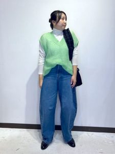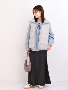 デニムは、オールシーズン楽しむことができる貴重なアイテムのひとつです。さまざまなアイテムとの相性がよく、エレガントな雰囲気をカジュアルダウンしたり綺麗めスタイルに仕上げたり幅広いコーディネートを楽しむことができますよね。このようなデニムですが、シルエット、サイズ感がポイントになってきます。カラーにもよりますが、脚周りはほどよくフィットするサイズ感を選ぶことでスタイルアップにつなげることができますよ。