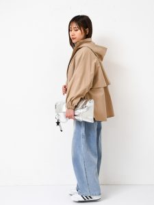 春のアウターというと、トレンチコートやスタンダードコート。ベージュやネイビーカラーのコートは、カジュアルにもエレガントにもコーディネートすることができます。ベーシックカラーのコートは、さまざまなテイストのスタイルに合わせやすく、コーディネートを選ぶことなく楽しむことができます。春先は、朝晩の寒暖差があったりするため手軽に羽織ることができるアウターがあると便利ですよ。
