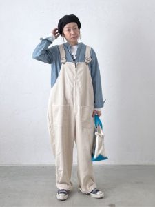 – 素材:コットンやリネン素材のサロペットで軽やかな着こなしに