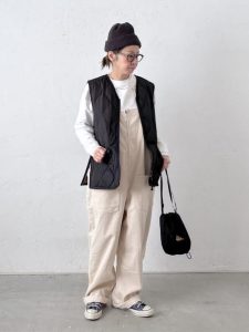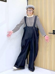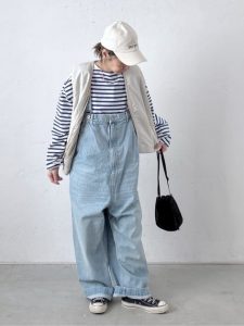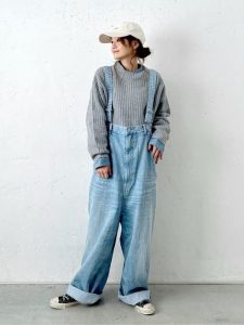 – 小柄な人 → オーバーサイズすぎるものは避け、コンパクトなデザインやテーパードシルエットを選ぶとバランスが取りやすくなります。ショート丈のサロペットもおすすめです。