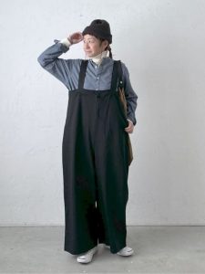 – 素材:ウール混や裏起毛のサロペットで暖かさをキープ