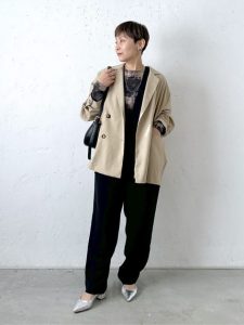 40代の女性が取り入れることで、きちんと感と抜け感のバランスが取れたスタイリングになり、若々しくおしゃれに見えます。