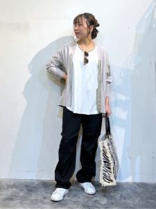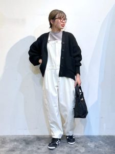 こんな時、アウターやカーディガン、バッグ、シューズなどに引き締めカラーの黒を選んでください。モノトーンカラーで仕上げることで、よりスタイリッシュな雰囲気を楽しむことができます。モノトーンカラーでは、白と黒カラーの分量によって印象を変えることができます。同じアイテムを使ったスタイリングでも、アウターの着丈を長くしたりインナーのカラーを変えることで雰囲気が変わりますよ。