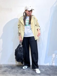 こんな時には、白を選んでみるのがおすすめ。春コーデに増えるベージュ×白という組み合わせの時には、白を引き締めカラーに選ぶことで軽やかにスタイリッシュさを楽しめます。カラーの選び方によって、コーディネート全体の雰囲気を変えることにつながるため上手にアイテム、カラーを選んでください。シンプルなカラー使いの時には、アクセサリーやバッグなどを上手に取り入れるのもおすすめです。