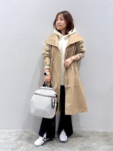1-2.春の定番アウターをエレガントにカジュアルダウンする白パーカー