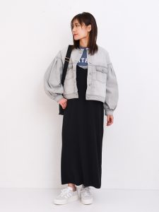 ゆったりとしたシルエットなので、ウエスト周りなど細かな部分を気にすることなくストレスフリーで過ごせる1枚ですね。カジュアルなTシャツスタイルの時にもブラックカラーのワンピースなので大人っぽく仕上げてくれるのではないでしょうか。シンプルでコーディネートしやすいアイテムは、ワードローブに1枚あると朝のスタイリングに悩んだ時にも時短アイテムとして助けてくれますよ。