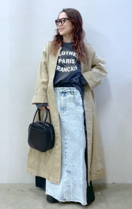 では実際にデニムコートワンピースを、ワンピースコーデとアウターコーデに分けてご紹介します。