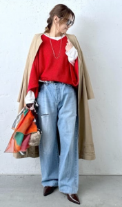 定番のファッションだからこそ小物で個性を出していきましょう。