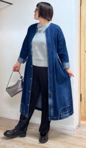 春先に活躍するデニムコートワンピース。
