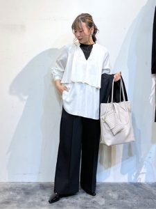 1-3.トレンドのレイヤードブラウスはモノトーンカラーでスタイリッシュに仕上げる