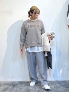こちらのトップスは、シースルーの素材とドッキングデザインされているカットソーです。着丈が長めで、ヒップラインまでしっかりとカバーしてくれますよ。インナーとしても使いやすいアイテムですが、スウェットなどと合わせることで長いシーズン活躍してくれますね。スタイリングアイテムを選ぶことで、雰囲気の違ったスタイルに仕上げて今から春先までしっかりと楽しむことができるアイテムです。