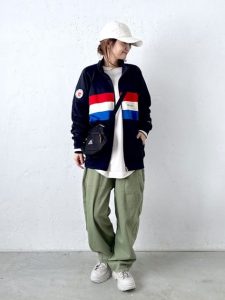 デニムやトラックパンツと合わせて、アクティブな雰囲気を楽しみましょう。