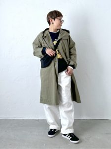 アノラックパーカーを活かした春の防寒メンズライクコーデ。
