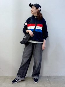 ナイロンジャケットやトラックパンツと組み合わせれば、バランスの取れた春コーデが完成します。