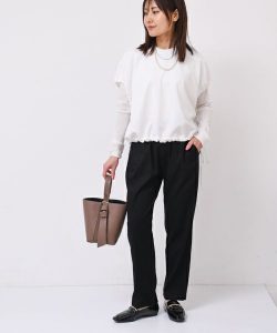 こちらは、上品な素材感のテーパードパンツ。シンプルなデザインなので、幅広いコーディネートに仕上げて楽しむことができるアイテムです。シンプルなデザインなので、オンオフ問わず使い勝手抜群で、どんなトップスと合わせてもスタイリッシュな印象に仕上げてくれます。春夏は、シンプルなコーディネートやビビットなカラーアイテムなどが活躍しますよね。このようなパンツが1本あると便利ですよ。