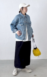 デニムジャケットは季節を問わない万能アイテム。だからこそ丈感は重要です。 パンツ、スカートはもちろん、ワンピースにも合う丈感を選びましょう。ピッタリすぎるとインナーがゴワゴワしてしまうので、ジャストすぎるサイズを選ばないのもコツです。