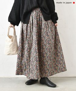 この花柄ギャザースカートは、フェミニンでありながらシンプルなデザインが特徴です。