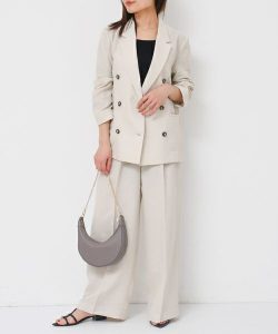 2-3.インナーを変えるだけでエレガントからカジュアルまで対応できるグレージュのセットアップ