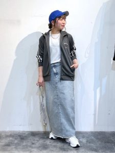 スタイリングする時に選ぶカラーは、ベーシック、シルエットは控え目にすることでお洒落度を上げて楽しめるでしょう。こちらのようなデニムタイトスカートは、女性らしさとカッコよさをプラスすることができるおすすめのアイテムですよ。今年トレンドのボリュームスカートを選びたい時は、マキシ丈を選ぶのがおすすめです。ズルっとしたシルエットで抜け感ある雰囲気を楽しむことができますよ。