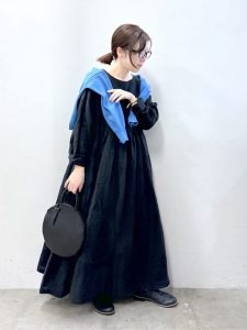 落ち着いた雰囲気が魅力の黒のロングワンピースを主役にした、40代・50代女性にぴったりの春コーデです。