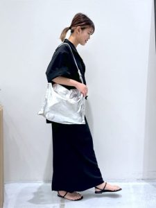 こんな時は、少し大きめのサイズ感のバッグをプラスするだけで全体のアクセントとして楽しめます。カゴバッグは季節感を楽しむことができます。透明なPVC素材のバッグなども、トレンド素材としておすすめですよ。カラーでは、メタリックカラーを選ぶのも素敵ですね。メタリックカラーのバッグを選ぶ時のポイントは、シンプルなデザインを選ぶことです。スッキリお洒落に見せることができますよ。