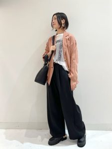 パステル系のピンクカラーのTシャツを選ぶことで、ほどよく女性らしさをコーディネートに加えることができます。デニムはハイライズシルエットを選ぶことで、脚長効果や大人のカジュアルコーディネートにつなげることができるでしょう。今回は、アニマル柄の中でもゼブラ柄のトートバッグを選んでいます。ゼブラ柄はモノトーンなので、インパクトとモードな雰囲気を楽しめるのでおすすめの柄ですよ。