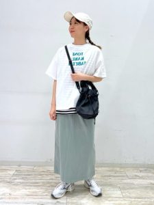 - 2. ロゴT×ロングスカートで華やかカジュアル