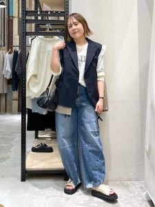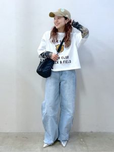 デニムはワイドシルエットでリラックス感があり、動きやすさも抜群。