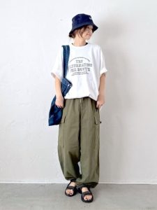 カーゴパンツはゆったりとしたシルエットで、暑い日にも通気性が良く涼しげに着こなせます。