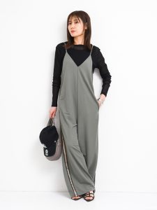 サロペットやデニムなど、手軽にお手入れができたり着心地抜群なアイテムはカジュアルな雰囲気が苦手なこともありますね。このようなアイテムをアップデートしてくれるのが黒色です。黒色を効果的に加えることで、スタイリッシュに仕上げることができます。ウエストがゴムデザインのパンツやゆるっとしたシルエットのアイテムは、コーディネートによっては部屋着感が強くなるため注意が必要です。こんな時、黒アイテムを選ぶと引き締め効果抜群です。