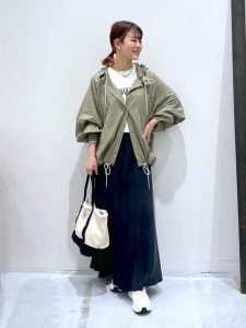 1-2.Tシャツやフードブルゾンをスタイリッシュに見せたい時は黒スカート一択で