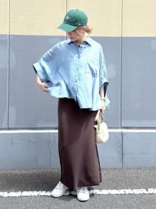 季節感を楽しみながら、大人っぽいテイストを楽しむことができます。春夏のスカート選びでは、着丈も大切いなってきます。中途半端なミモレ丈なども素敵ですが、長めの着丈、マキシ丈を選ぶとスニーカースタイルを今っぽく楽しむことができます。春夏コーディネートの足元は、スニーカーやサンダル、ボリュームがあるスポーツサンダルが増えますよね。マキシ丈スカートは、このようなカジュアル感が強い足元アイテムともバランスよく仕上がります。