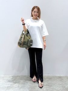 2-3.ゆったりシルエットのトップスはセミフレアパンツを選んでバランスよくスタイリングする