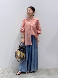 春夏のトレンド素材のひとつ透け感を楽しめる素材は、デザインとカラー選びを工夫することで上品に大人っぽく楽しむことができます。シャツやブラウスなど落ち着いたデザインのアイテムは、ボトムスを選ぶことなくコーディネートしやすいのでおすすめ。柔らかなピンクカラーも、落ち着いたトーンを選ぶことで大人の女性でも抵抗感なく楽しめるアイテムなのではないでしょうか。長めのスカートと組合わせることで上品に仕上がりますよね。