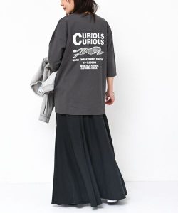 カジュアルだけれど、手軽に今っぽさを楽しむことができるロゴやフォトをはじめとするデザインTシャツを、大人っぽくコーディネートしたい時はスカートを選んでください。テーパードやセンタープレスパンツとのコーディネートも落ち着いた雰囲気を楽しめますが、少しだけ着こなし方やアイテム選びの工夫が必要になります。こんな時、スカートスタイルを選ぶことで面倒な工夫も必要なく手軽に落ちついた大人のカジュアルスタイルとして楽しめます。