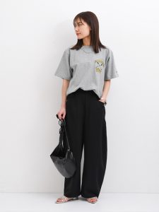 Tシャツを選ぶ時には、ベースカラーも大切です。白や黒、グレーなどベーシックカラーのアイテムは落ち着いた雰囲気なのでおすすめ。コーディネートアイテムを選ぶ時は、テーパードやセンタープレスパンツ、ロング丈のスカートを選ぶことで上品に見えますよ。綺麗めなボトムスを選ぶことで、ロゴTのカジュアルさをバランスよく綺麗めに仕上げてくれる効果を期待できます。カジュアルなアイテムだからこそ、上手にコーディネートしてみてくださいね。