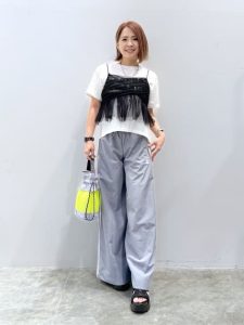 2-2.今っぽさを楽しめるメッシュ素材のビスチェでシンプルコーディネートにスパイスをプラス