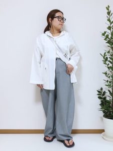 1.羽織りを変えて自分好みのテイストを楽しむパンツコーディネート
