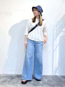 カジュアルなイメージのデニムですが、アイテム選び、コーディネートを工夫することで幅広いスタイルを楽しむことができるのではないでしょうか。コーディネートをする時、シューズや小物使いによっても印象が変わります。暑く、湿度が高い日は、素材や風通りのよいシルエットを選ぶことで涼しく快適に過ごすことができます。お気に入りのアイテムで、お洒落に快適に過ごしてみてはいかがでしょうか。