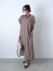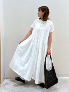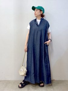 涼しさと清潔感を両立した、夏にぴったりのワンピーススタイルです。