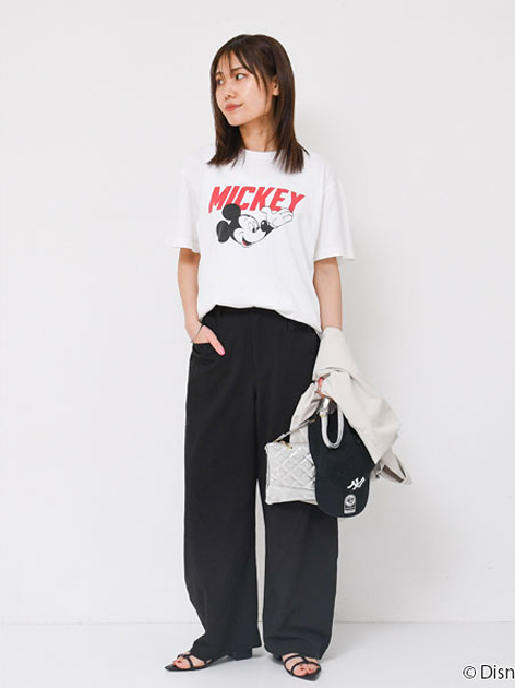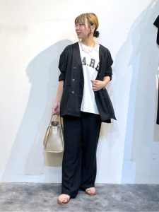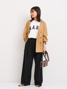 ブラックカラーのパンツは、引き締め効果が高く、コーディネートアイテムを選ばないなど多くのメリットがあります。40、50代の大人世代の女性は、少しゆったりとしたワイドパンツやタック、テーパードパンツを選ぶのがスタイリッシュに見せるコツ。カジュアルテイストのロゴやフォトTシャツも今っぽく、大人カジュアルスタイルに仕上げることができます。トレンドのメッシュやオーガンジも素敵。
